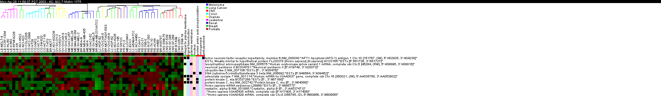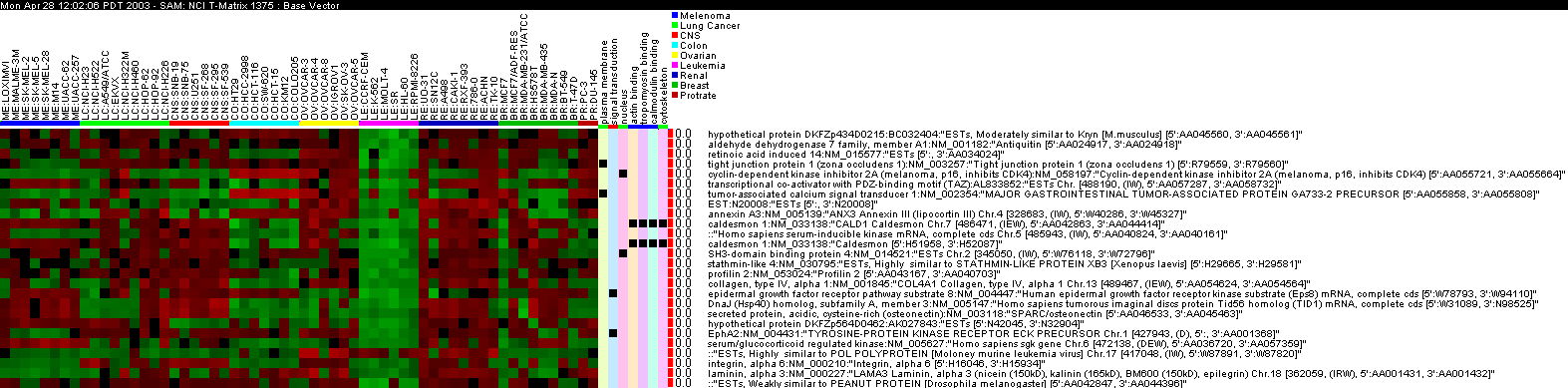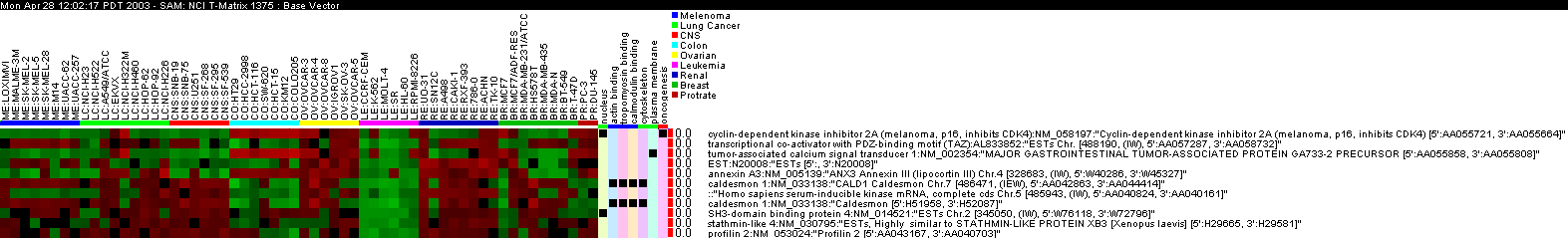 thumbnail, row info and Gene Ontology Information (if applicable).