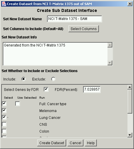 Melenoma and CNS) to select the most signifigant rows (genes) to include